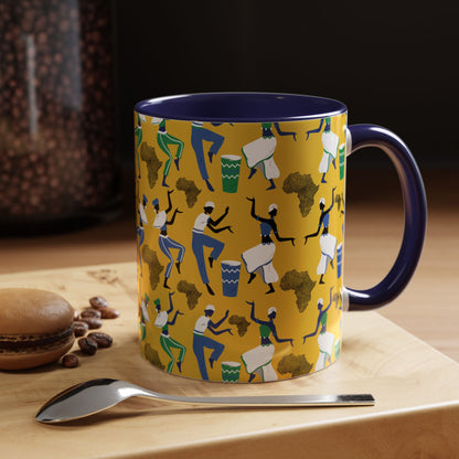 Sip in style with our Rhythms of Africa 11oz Mug, featuring a bold and dynamic design inspired by African dance, music, and heritage. Set against a vibrant yellow backdrop, this mug showcases expressive figures in motion, traditional drums, and fingerprint-patterned African maps—symbolising identity, connection, and the spirit of togetherness.