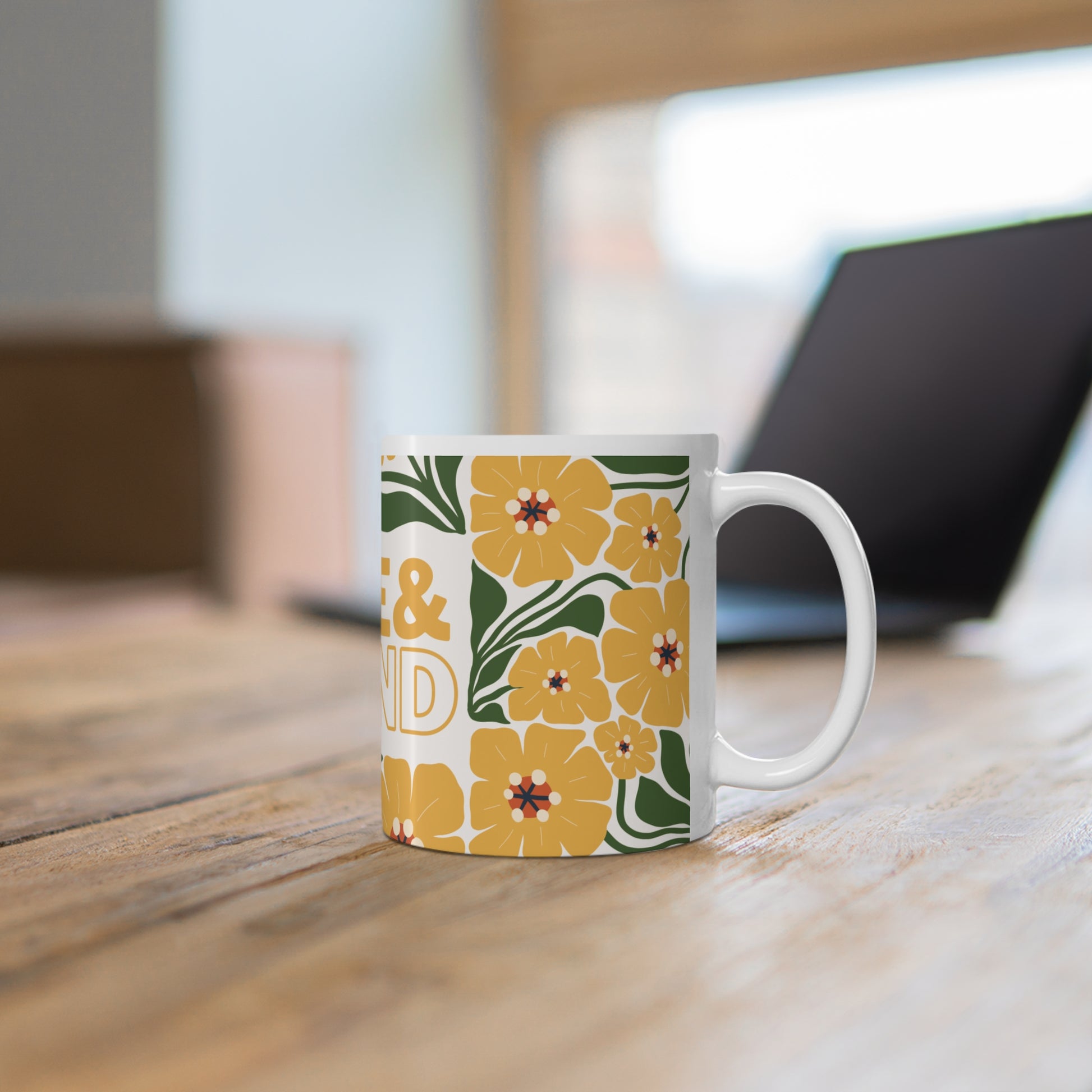 Start your day with motivation and a touch of sunshine. This beautifully designed mug features vibrant yellow florals and the energizing message Rise & Grind, reminding you to embrace the day with purpose. Whether you're sipping your morning coffee, tea, or matcha, this mug is the perfect companion to fuel your ambition and brighten your routine.