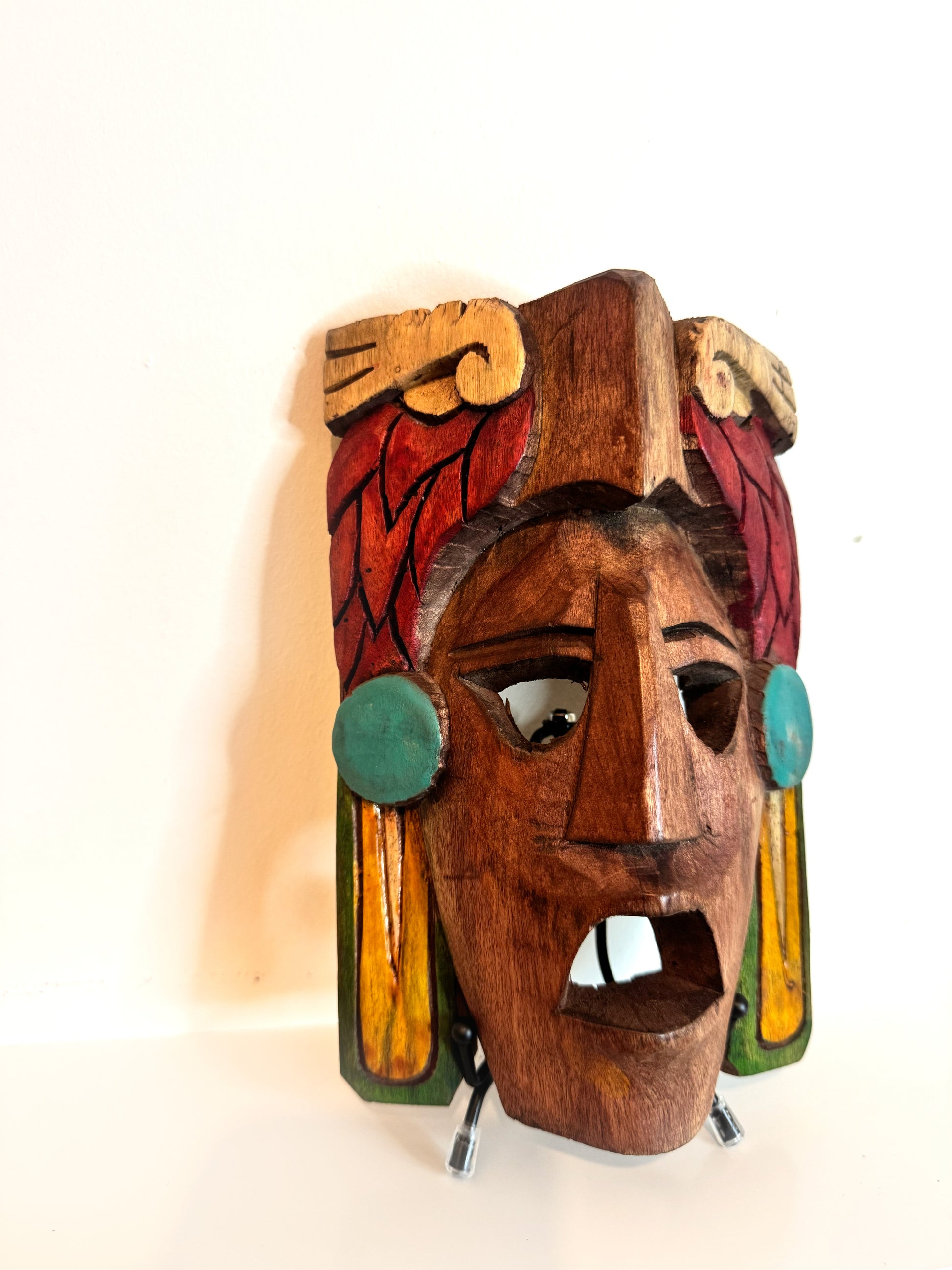 Discover the vibrant charm of this handcrafted wooden mask, adorned with colourful feathers that bring it to life. Sourced from a local artisan in Mexico, this unique piece showcases traditional craftsmanship and cultural artistry, making it a perfect addition to your home decor or a thoughtful gift for someone special. Embrace the spirit of Mexico with this eye-catching mask that tells a story of creativity and heritage.