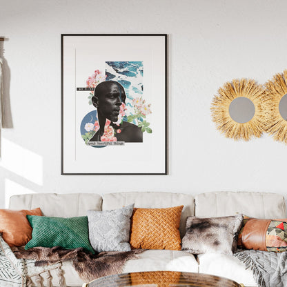 This print is a vibrant celebration of kindness and positivity. Featuring a striking portrait layered with blooming flowers, the vast ocean, and a serene crescent moon, it embodies a sense of inner peace and connection to nature. The words "Be Kind" and "Speak Beautiful Things" serve as gentle reminders to choose compassion and uplifting words in our daily lives.